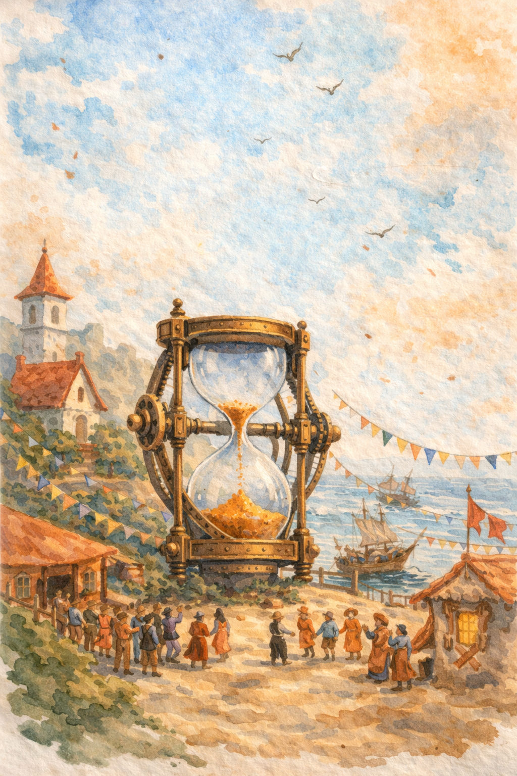 Eventyret foregår i byen Solasz, som er berømt for det enorme magiske timeglas kendt som Evighedsglasset. Hvert år ved midnat bliver glasset ceremonielt vendt, og byen fejrer begyndelsen på et nyt år med festival, markeder og festligheder.